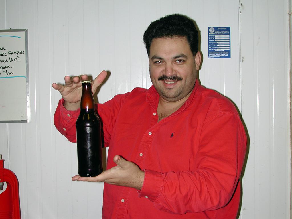 Bill holds up our first working bottle!