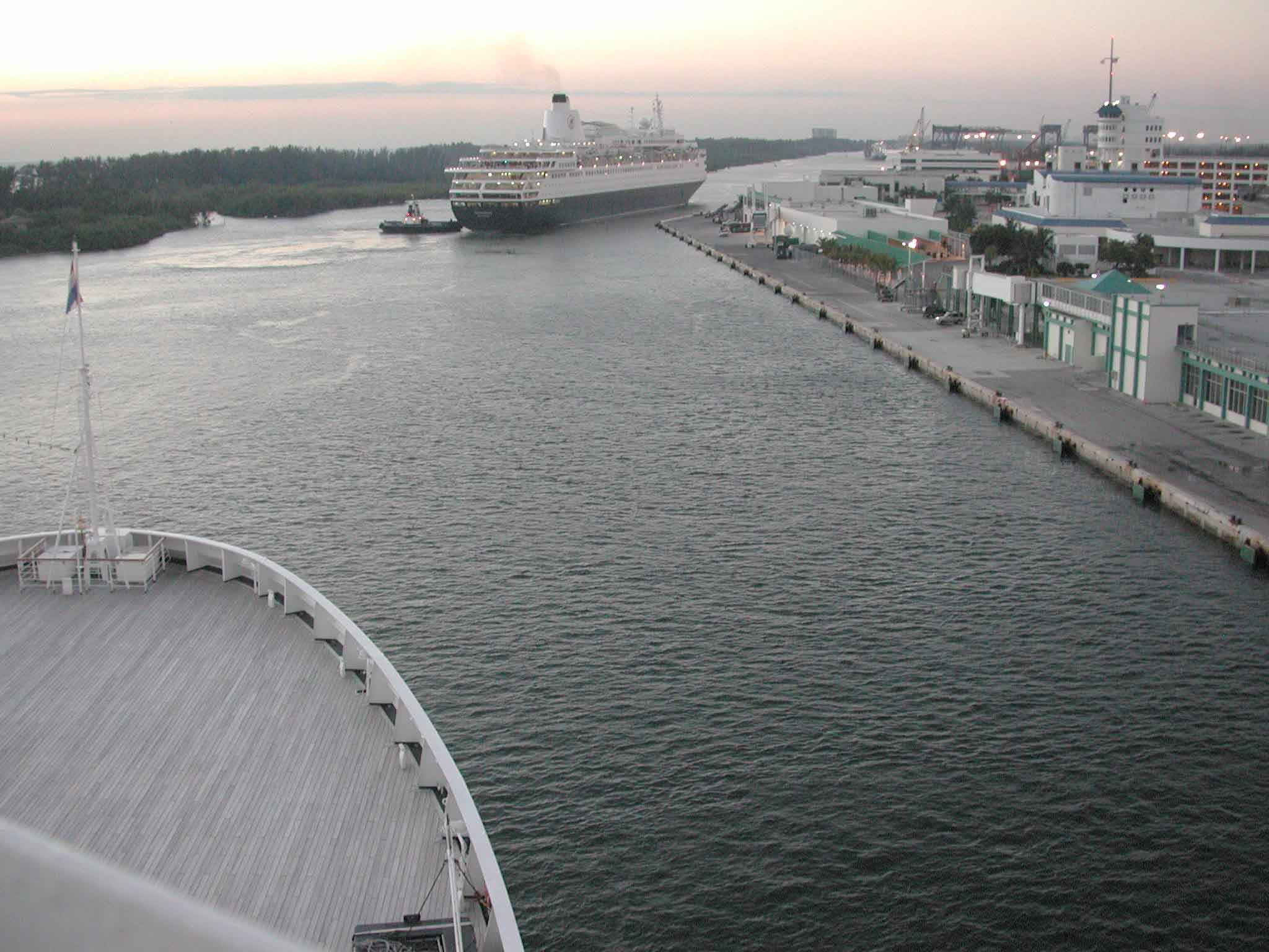 As the morning sun came up behind us, we pulled into Port Everglades and watched as our ship docked behind her sister ship, the m/s Westerdam.