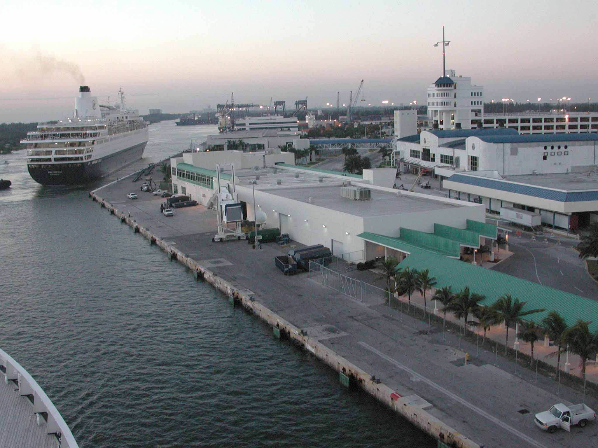 As the morning sun came up behind us, we pulled into Port Everglades and watched as our ship docked behind her sister ship, the m/s Westerdam.