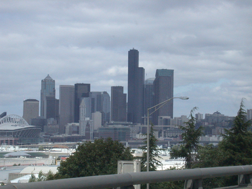 Downtown Seattle, as we approach from the south.