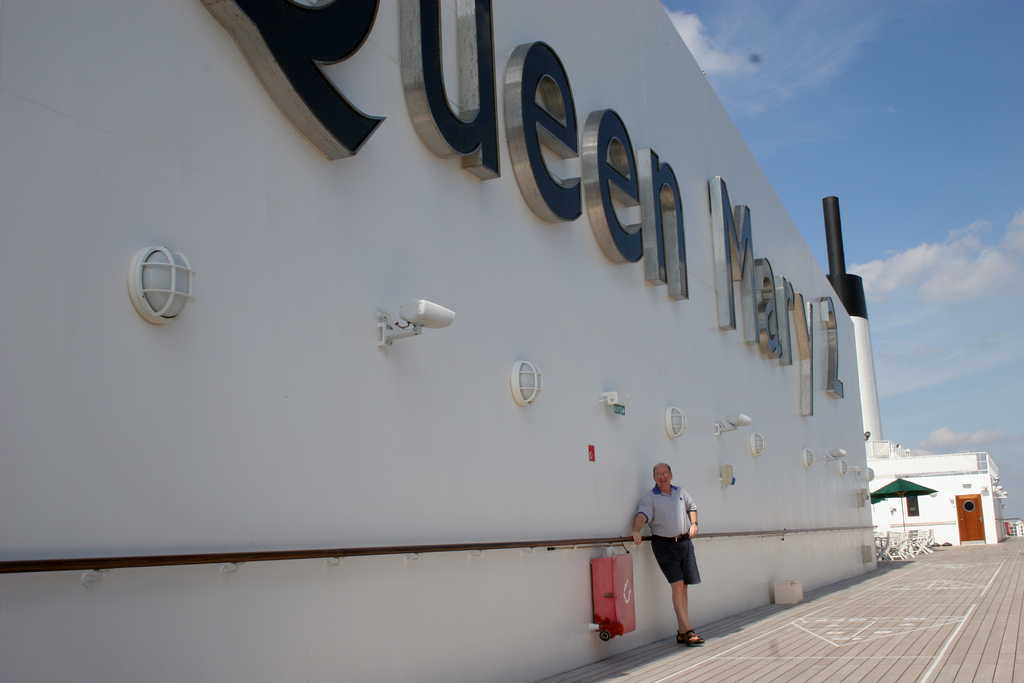 "Captain" Neil on the sports deck of the Queen Mary 2.