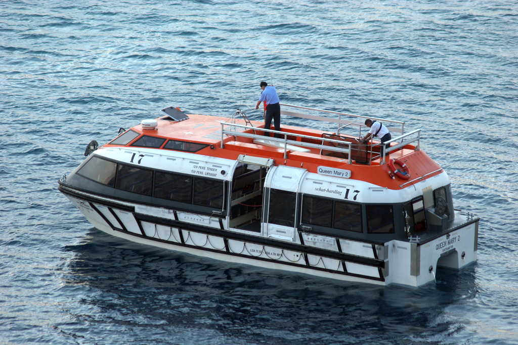 We tender into shore on these boats